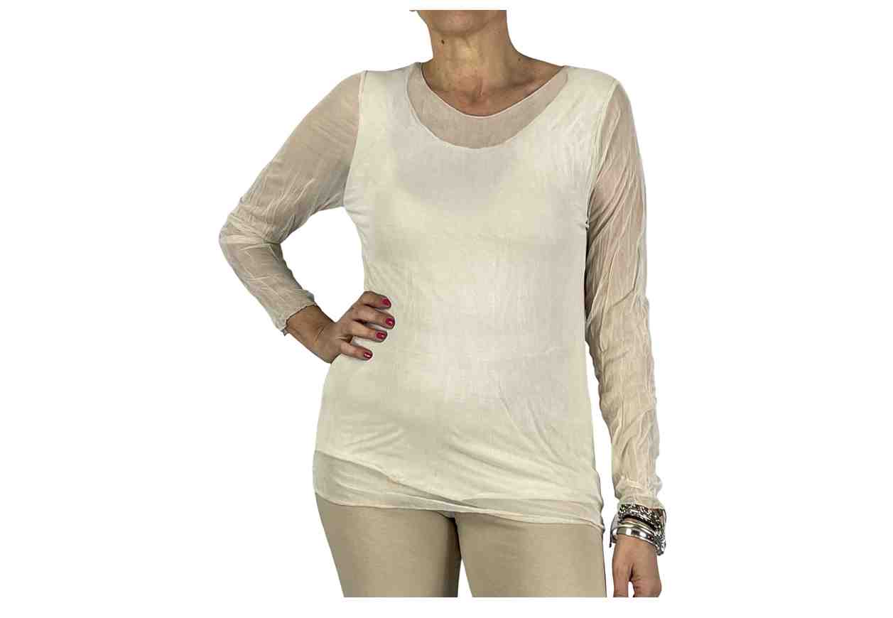 PL Blusa in tulle tinta unita, manica lunga.