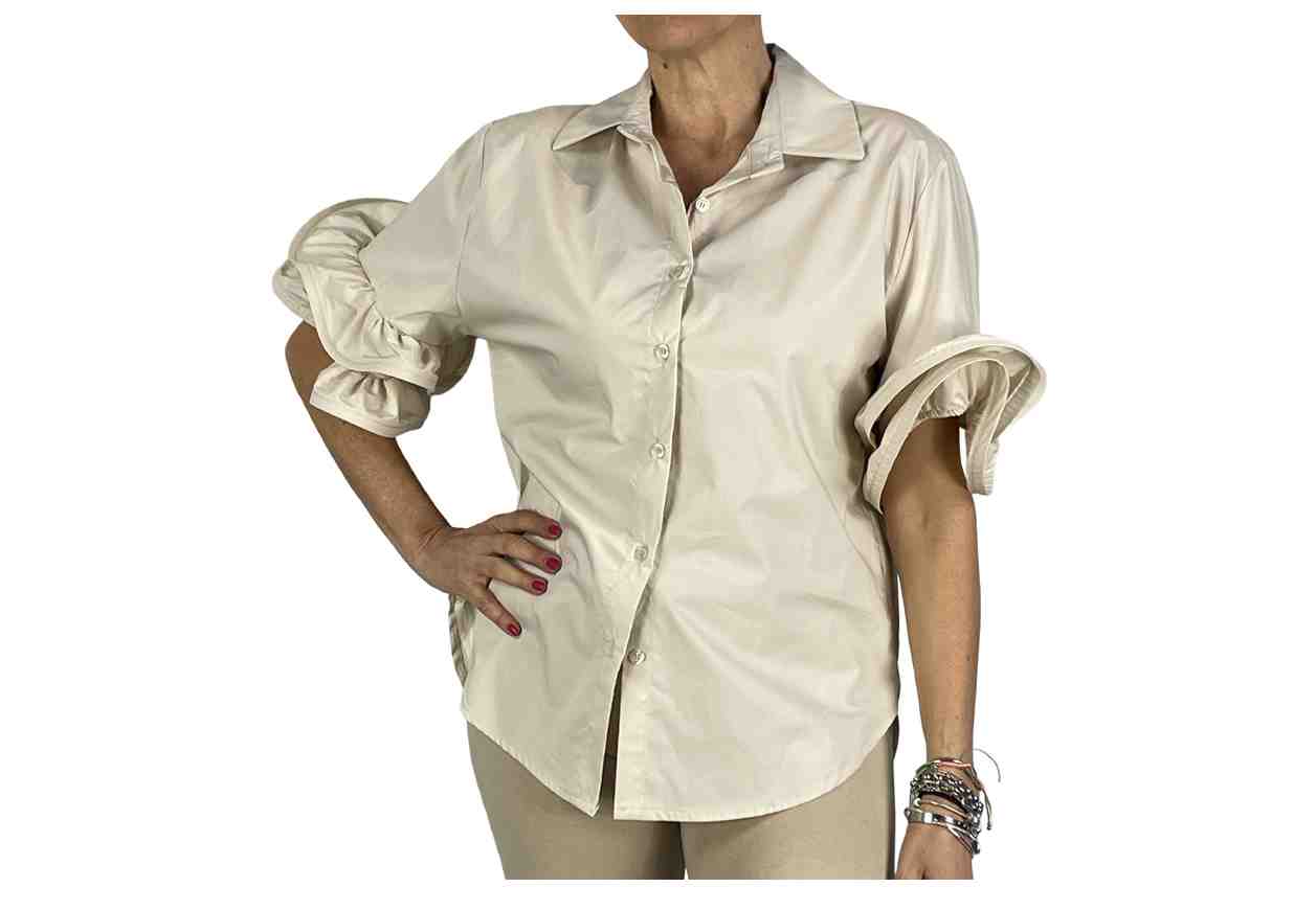 PL Camicia in tinta unita con manica corta a balze.