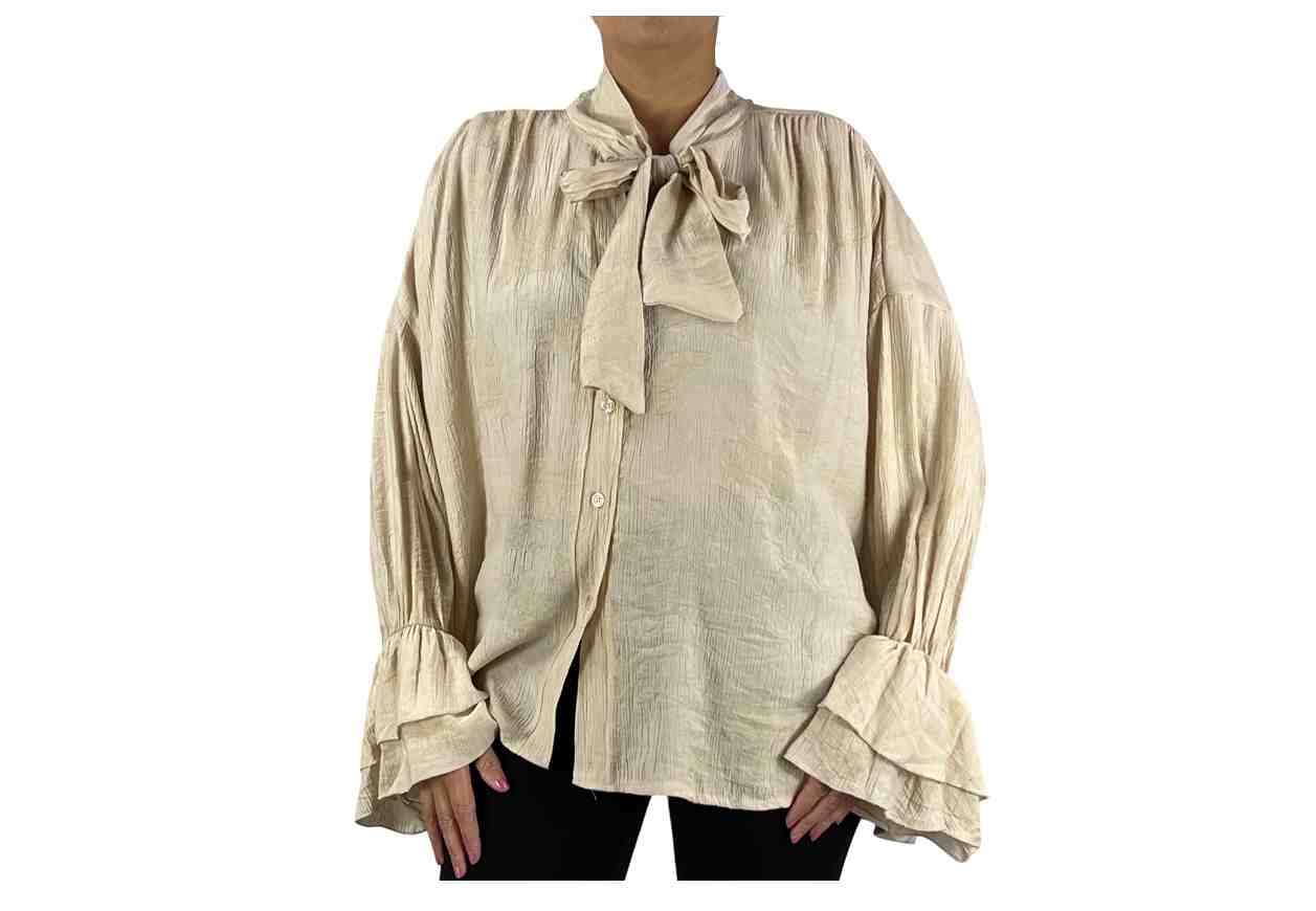 PL Camicia in tinta unita, lavorazione floreale, fiocco.