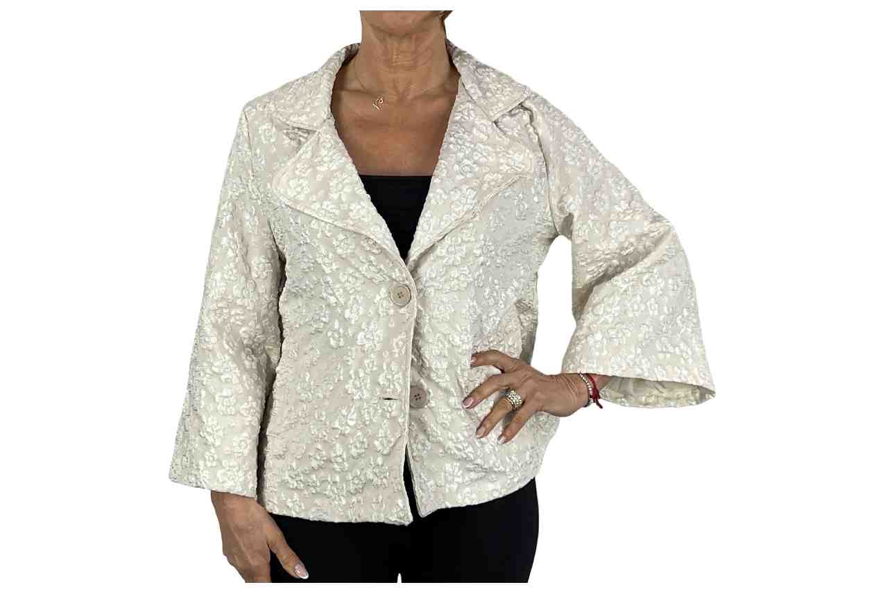 PL Giacca in rilievo, fantasia floreale, tasche, scollo a revers