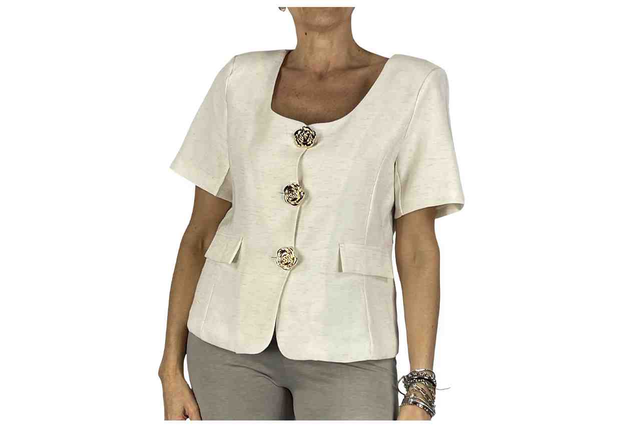 PL Giacca in tinta unita, manica corta, dettaglio bottoni.