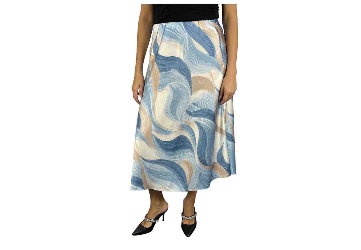 PL Gonna longuette in fantasia con elastico in vita.
