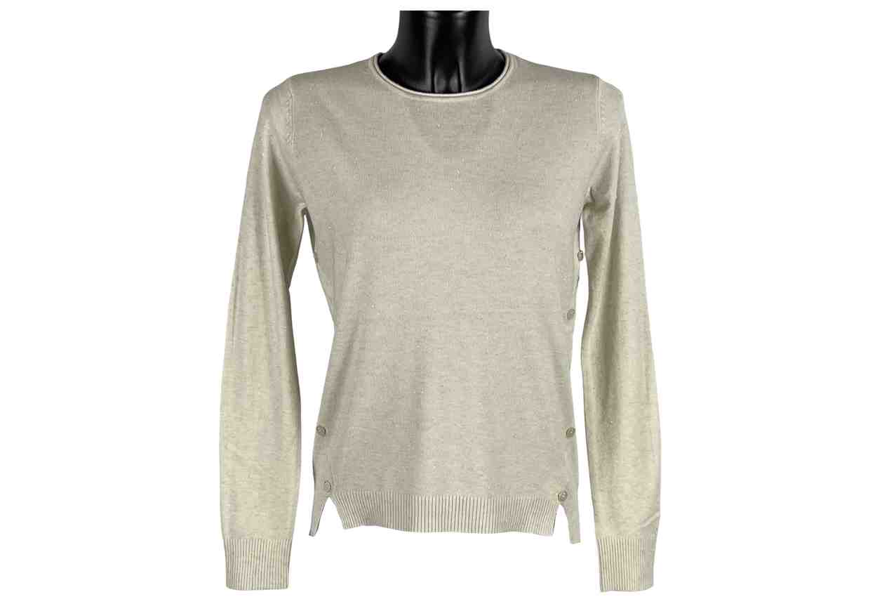 PL Maglia in tinta unita, bottoni e dettagli luminosi.