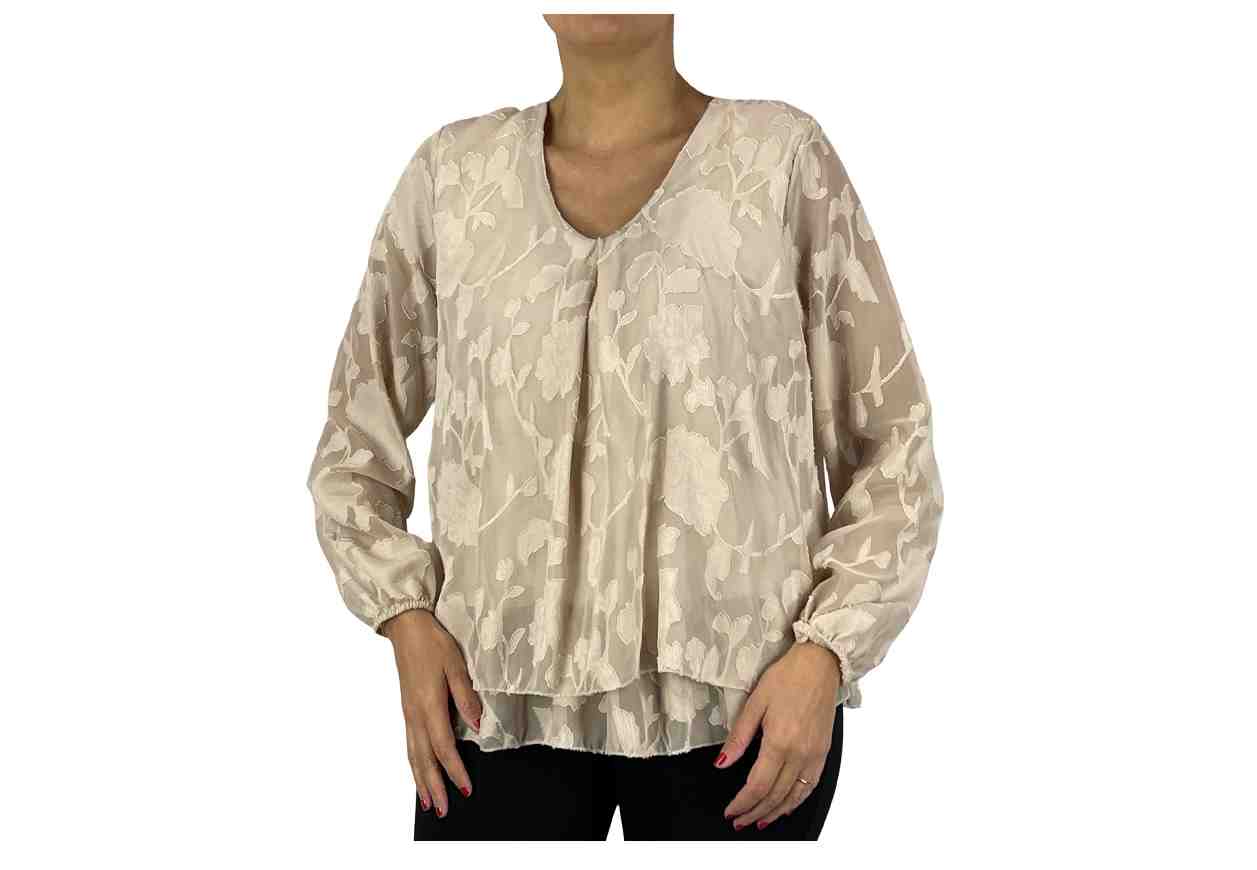 Maglia in voile tinta unita con motivo floreale e fodera interna.