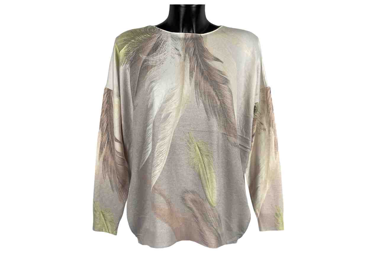 PINKLOVE Maglia multicolore in fantasia piume, girocollo.