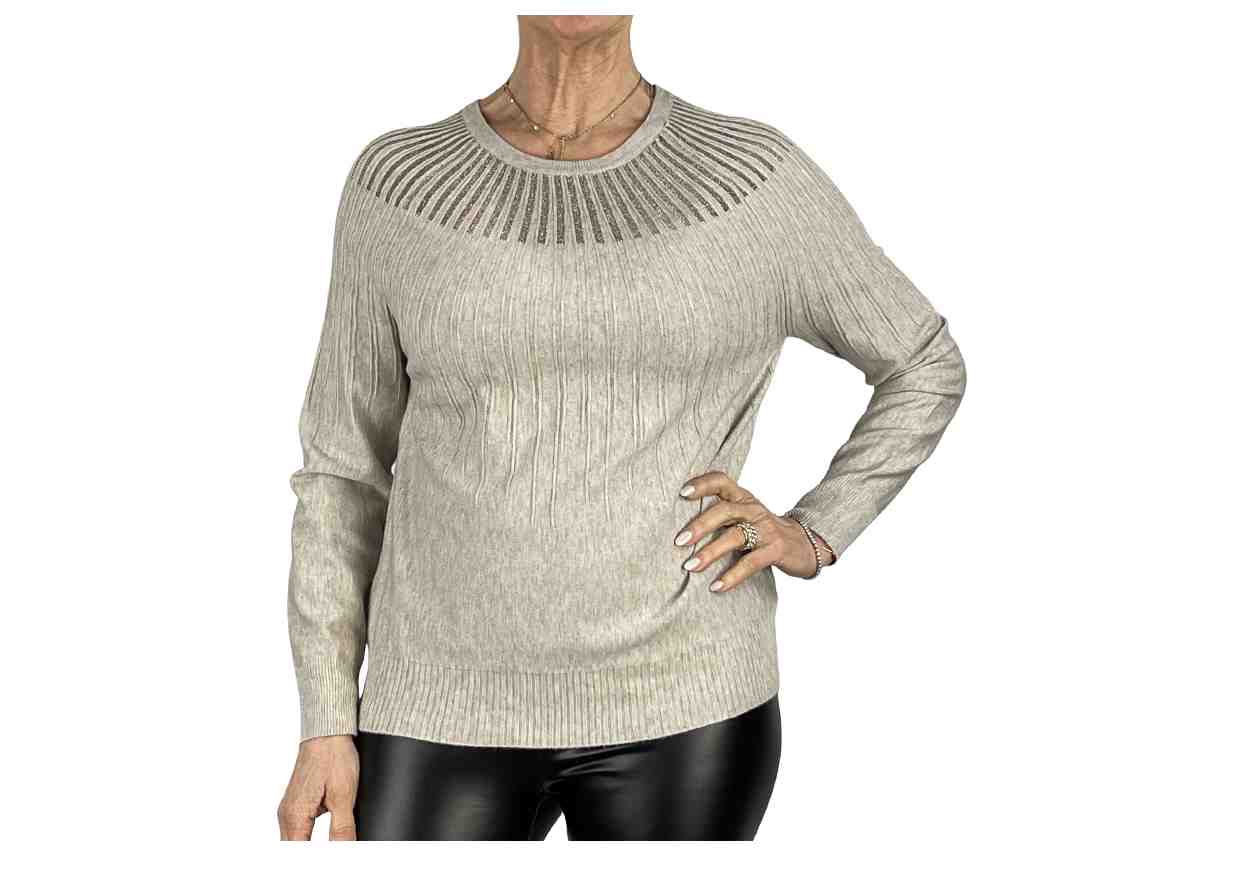 PL Maglia traforata effetto melange, manica lunga.
