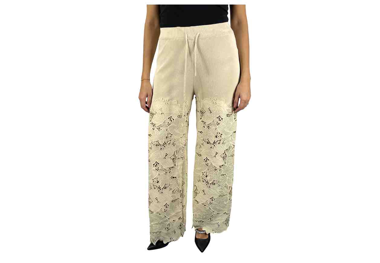 PL Pantalone in maglia, tinta unita con inserti in pizzo.