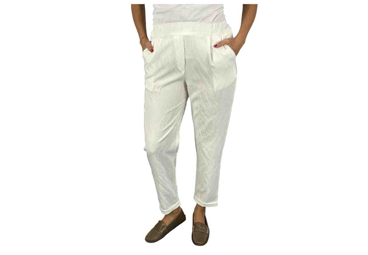 Pantalone in tinta unita con elastico in vita e motivo a onde.