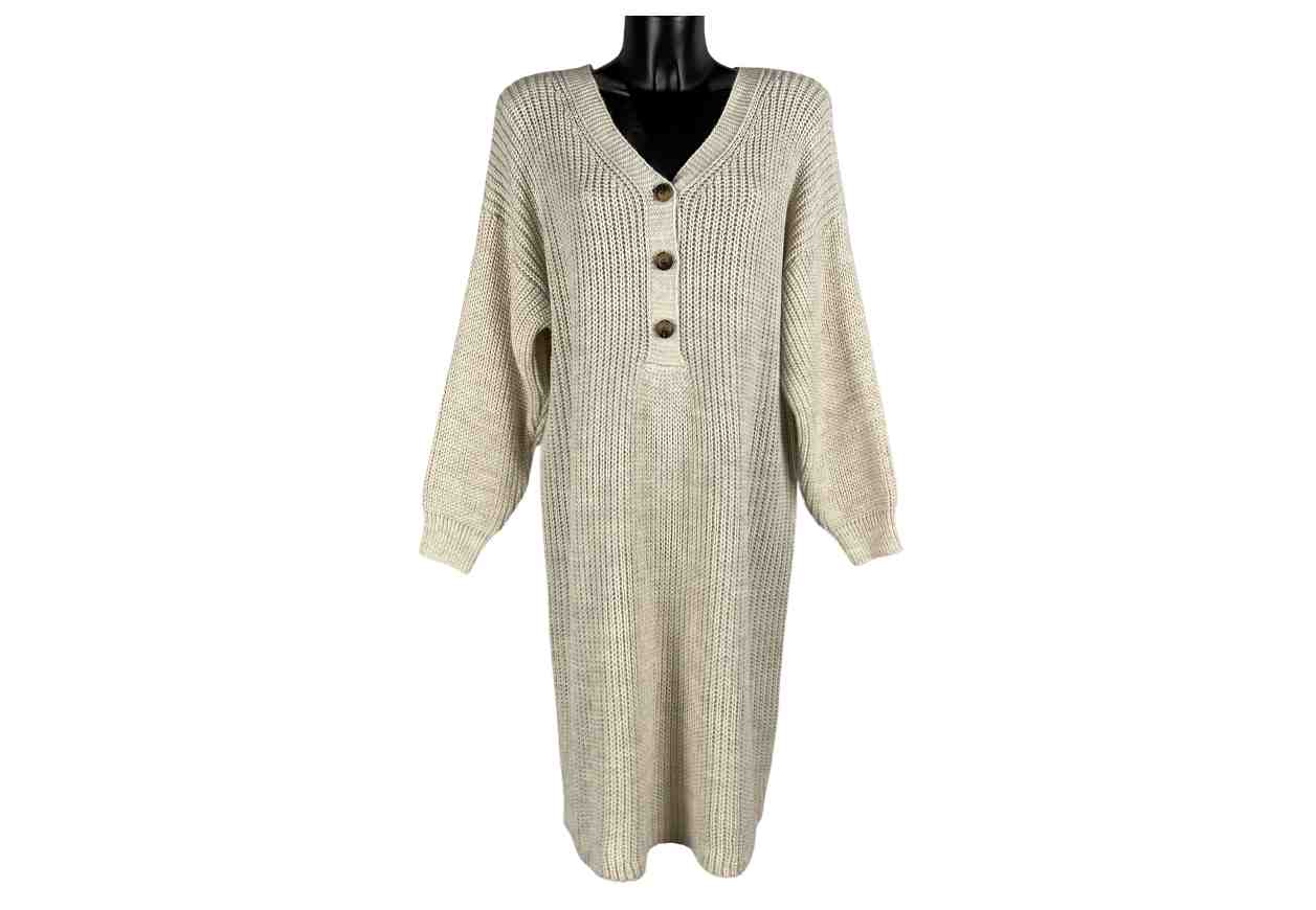 RENE' BORDEN Abito in maglia in tinta unita, bottoni su scollo a V, maniche lunghe.