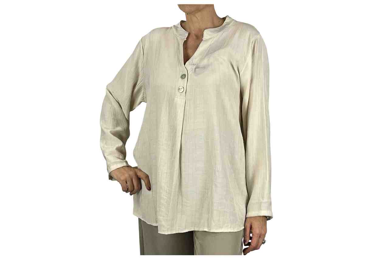 RENE' BORDEN Blusa in tinta unita con scollo a V, maniche lunghe.