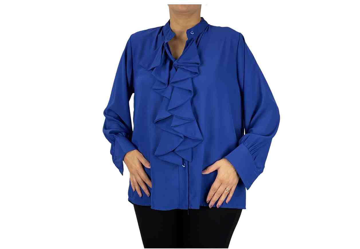 RB Camicia in voile in tinta unita con rouches frontali e collo alla coreana.