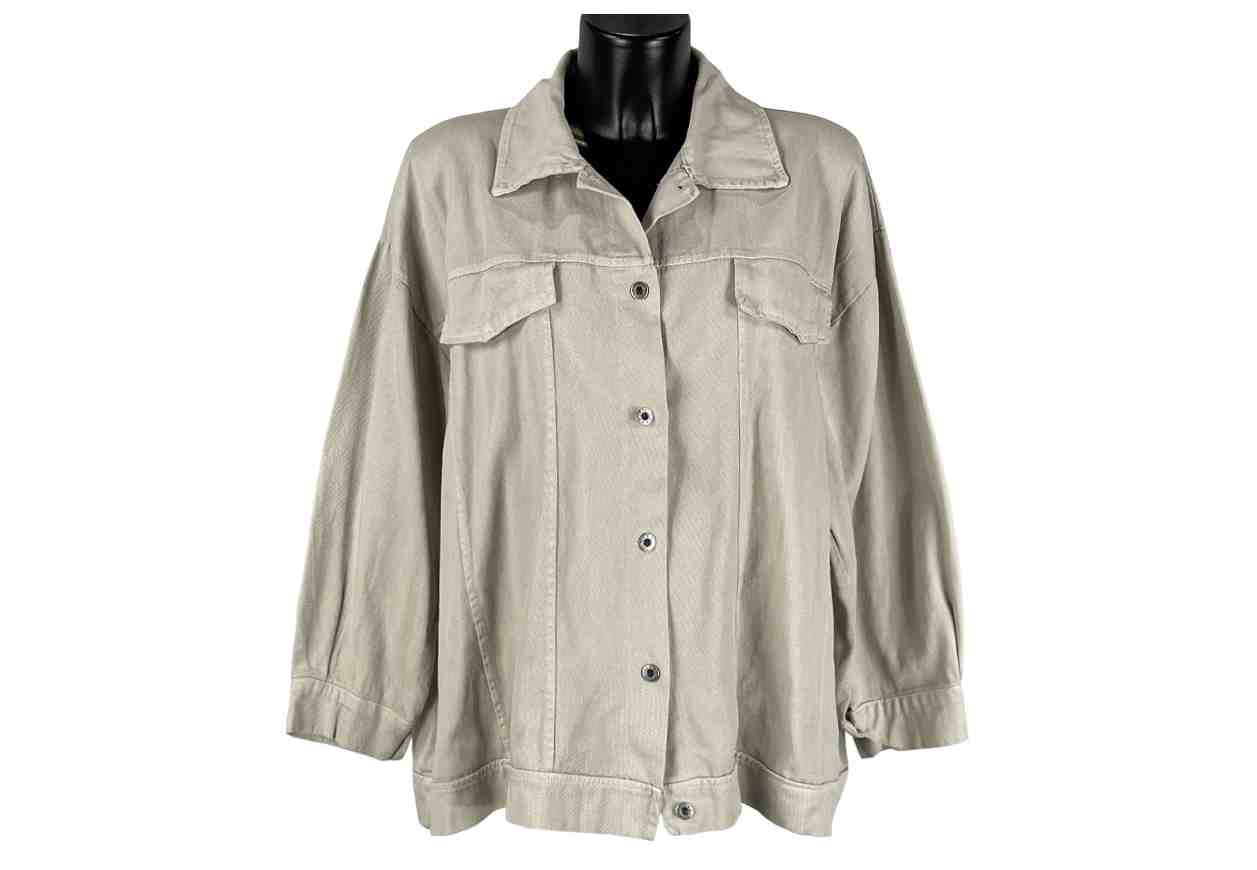 RB Giacca in jeans tinta unita con bottoni frontali e finte tasche con patta.