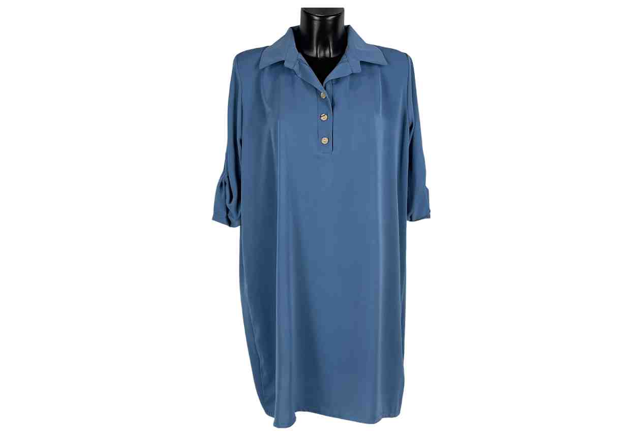 RENE' BORDEN Maxi blusa in tinta unita con bottoni su scollo, maniche regolabili.