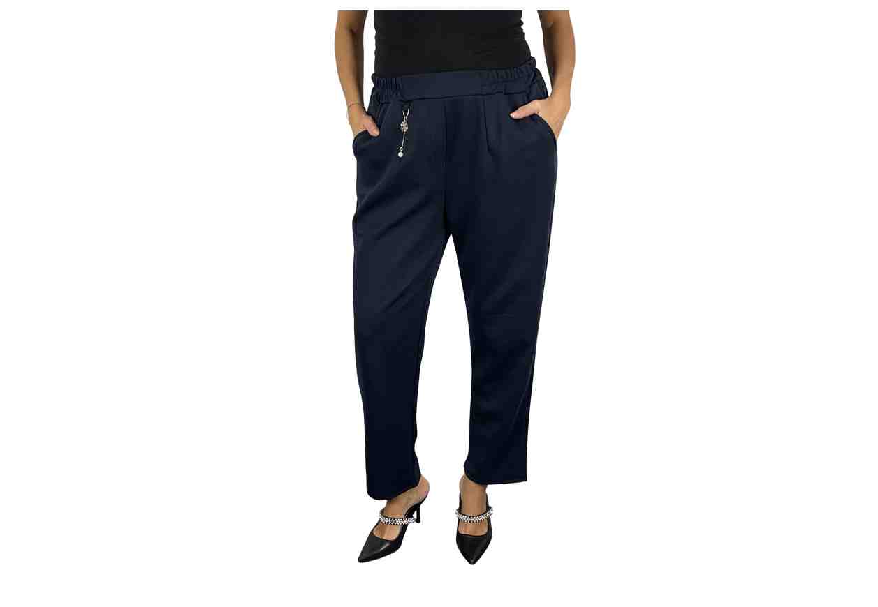RENE' BORDEN Pantalone in tinta unita con gioiello frontale in dettaglio, tasche ed elastico in vita.