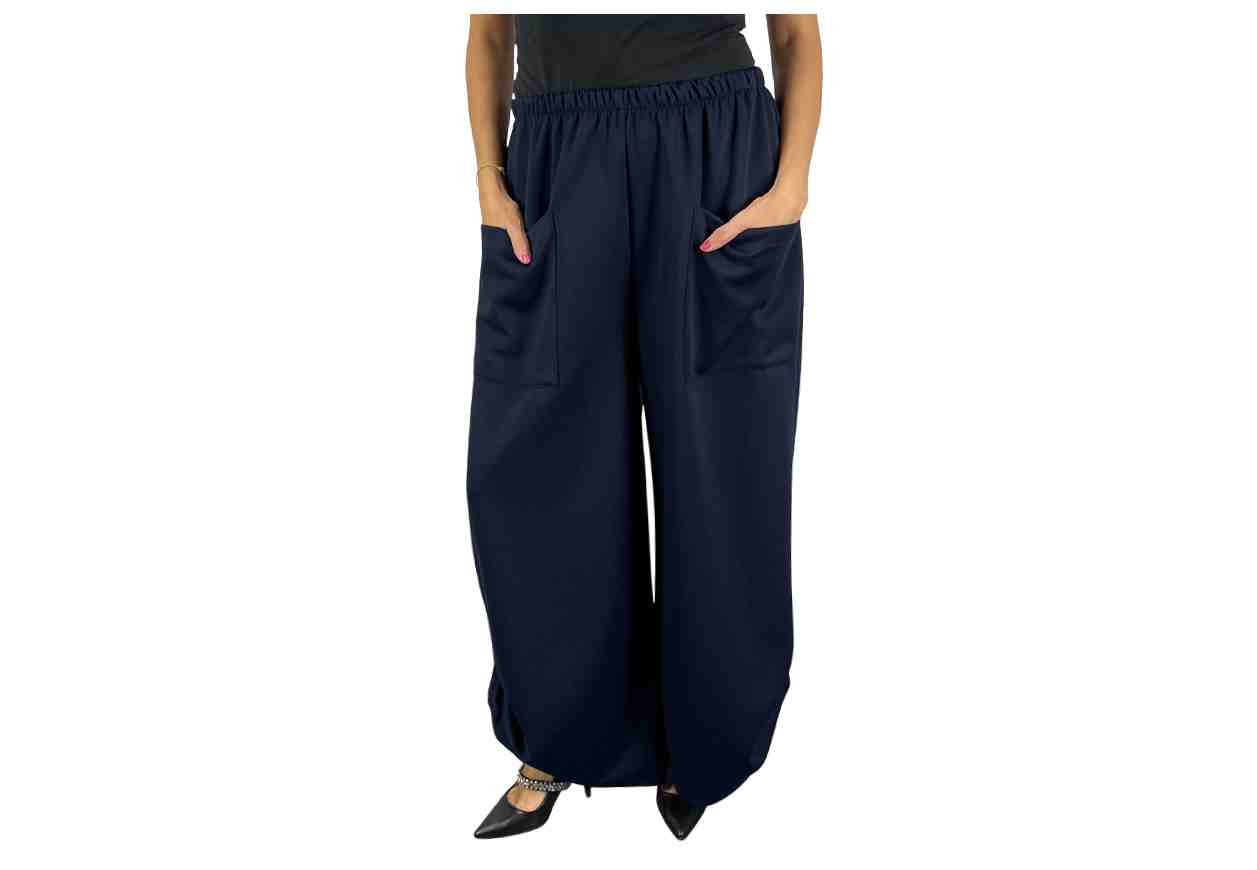 RENE' BORDEN Pantalone in tinta unita con tasche e bottone regolabile sul fondo, elastico in vita.