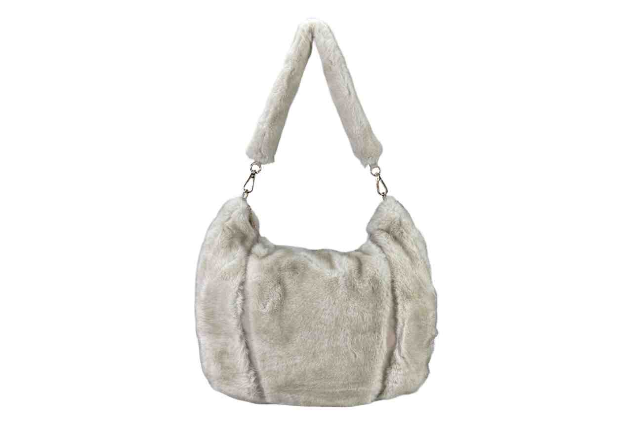 REALE Borsa in ecopelliccia, scomparto con zip, tracolla a catena removibile, tinta unita.