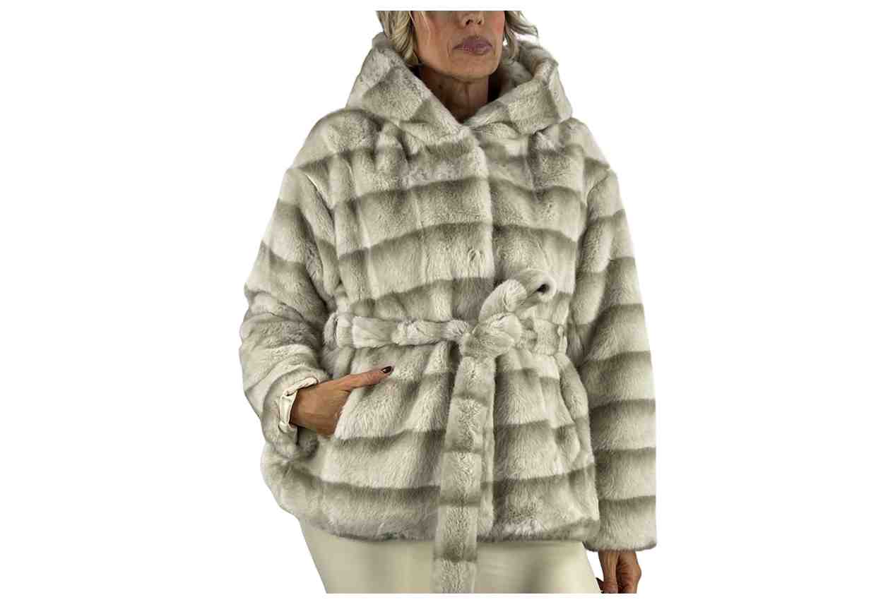 REALE Ecopelliccia in tinta unita con cappuccio, tasche e cintura in vita.
