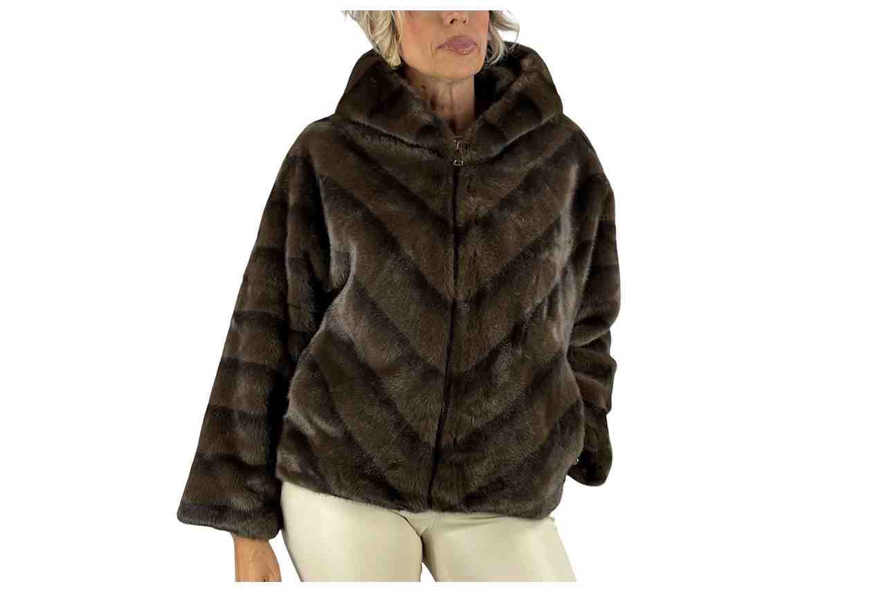 REALE Ecopelliccia in tinta unita con zip, tasche e cappuccio.