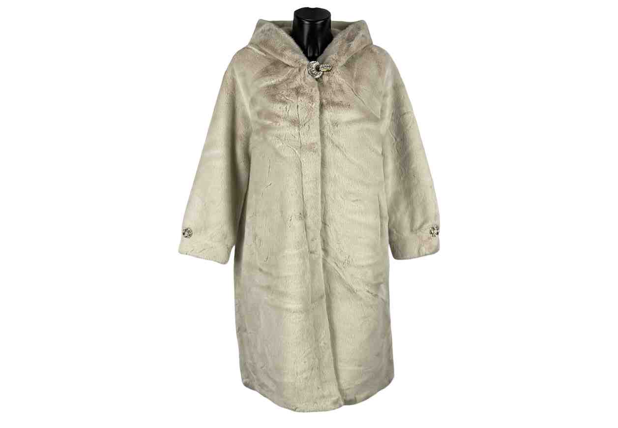 REALE Ecopelliccia lunga in tinta unita, chiusura gioiello su scollo, tasche e cappuccio.