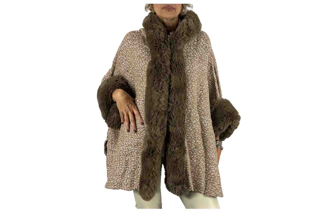 REALE Mantella con lavorazione intrecciata con filo lurex, profili in ecopelliccia e cappuccio.