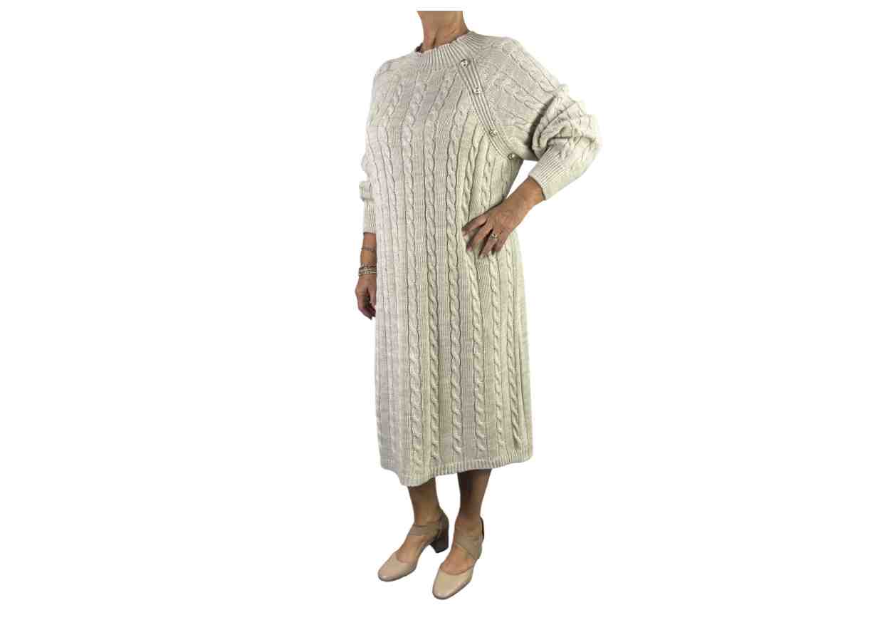 RENE’ BORDEN Abito in maglia, tinta unita, trecce e bottoni in dettaglio, manica lunga.