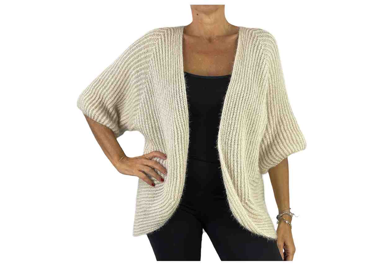 RENE’ BORDEN Cardigan aperto in misto lana con maniche a 3/4, tinta unita.