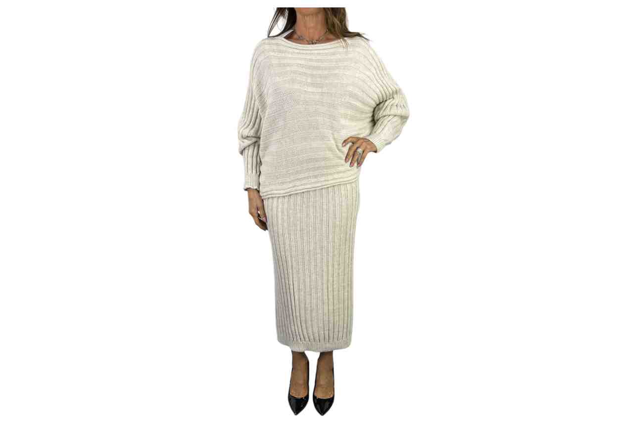RENE' BORDEN Completo in maglia in tinta unita: maglia con scollo a barchetta, gonna con elastico in vita.