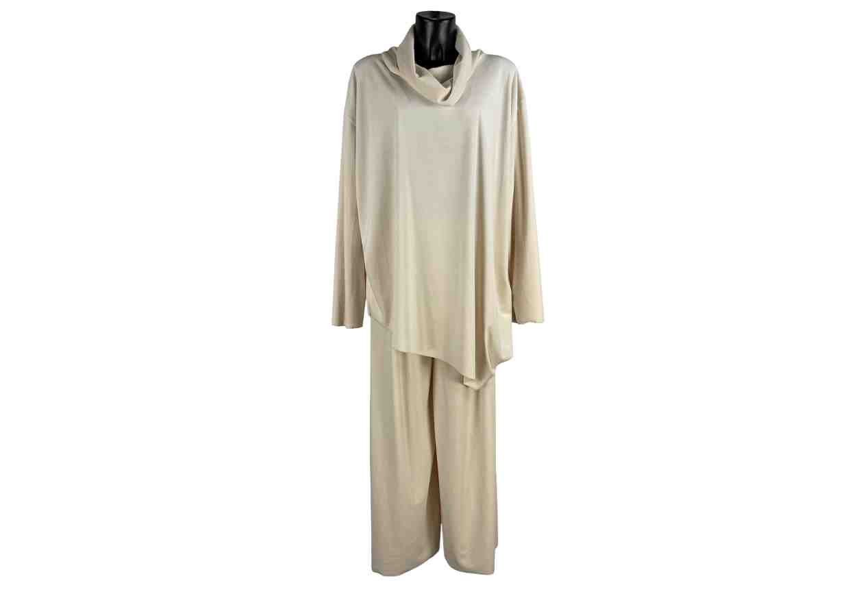 RENE' BORDEN Completo in simil velluto: maglia con collo a ciambella con fondo assimetrico, pantalone con elastico in vita.