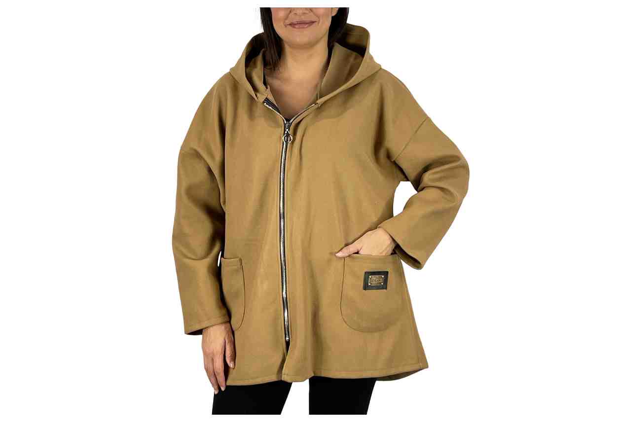 RENE' BORDEN Giacca in tinta unita con cappuccio, manica lunga, tasche frontali, zip e doppia lunghezza.
