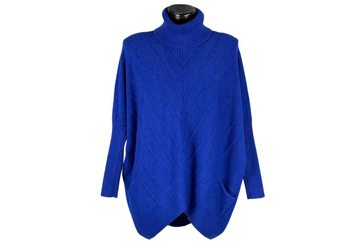 RENE' BORDEN Maglia con collo alto con motivo in rilievo, doppia lunghezza e tasche frontali, tinta unita.