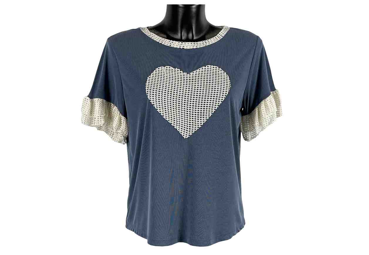RENE’ BORDEN Maglia con motivo a cuore frontale, balze su maniche corte.