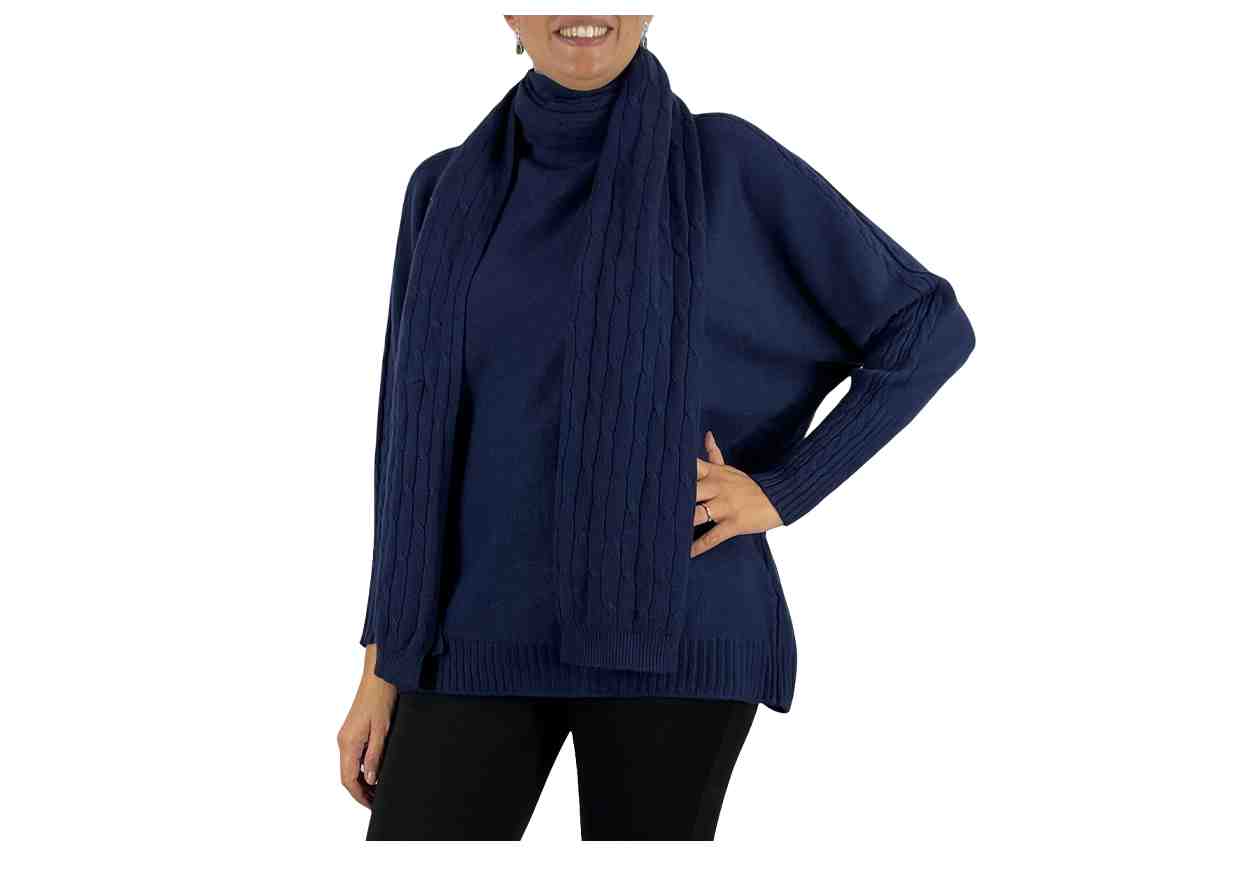 RENE’ BORDEN Maglia con sciarpa abbinata con motivo in dettaglio, tinta unita