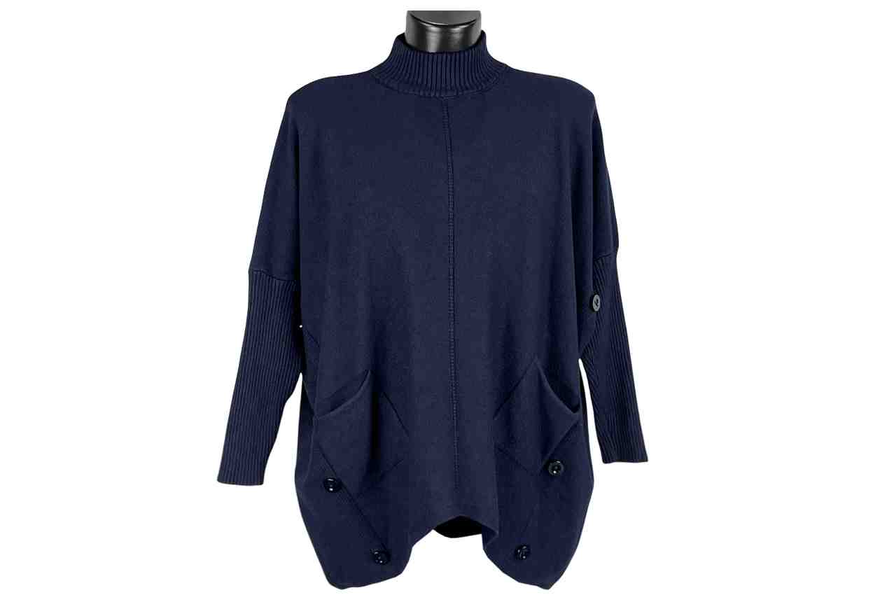 RENE’ BORDEN Maglia in tinta unita con bottoni e tasche frontali, doppia lunghezza.