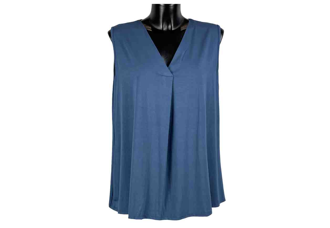 RENE’ BORDEN Maglia smanicata in tinta unita, scollo a V con pince.