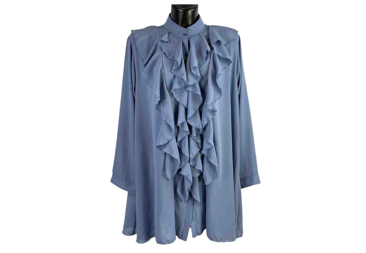 RENE’ BORDEN Maxi camicia in tinta unita con rouches frontali, collo alla coreana.