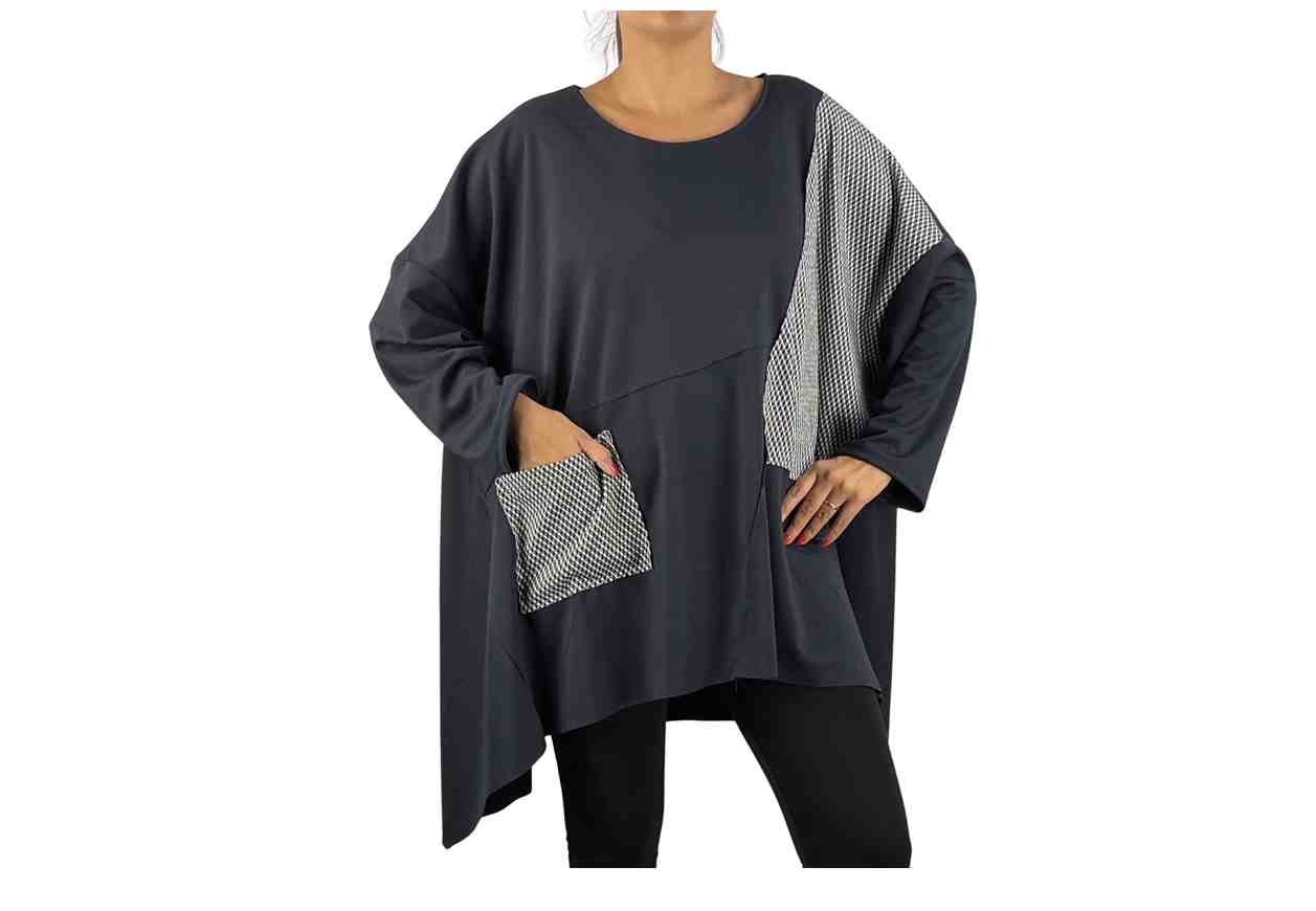 RENE' BORDEN Maxi maglia in tinta unita con inserti in fantasia, doppia lughezza.