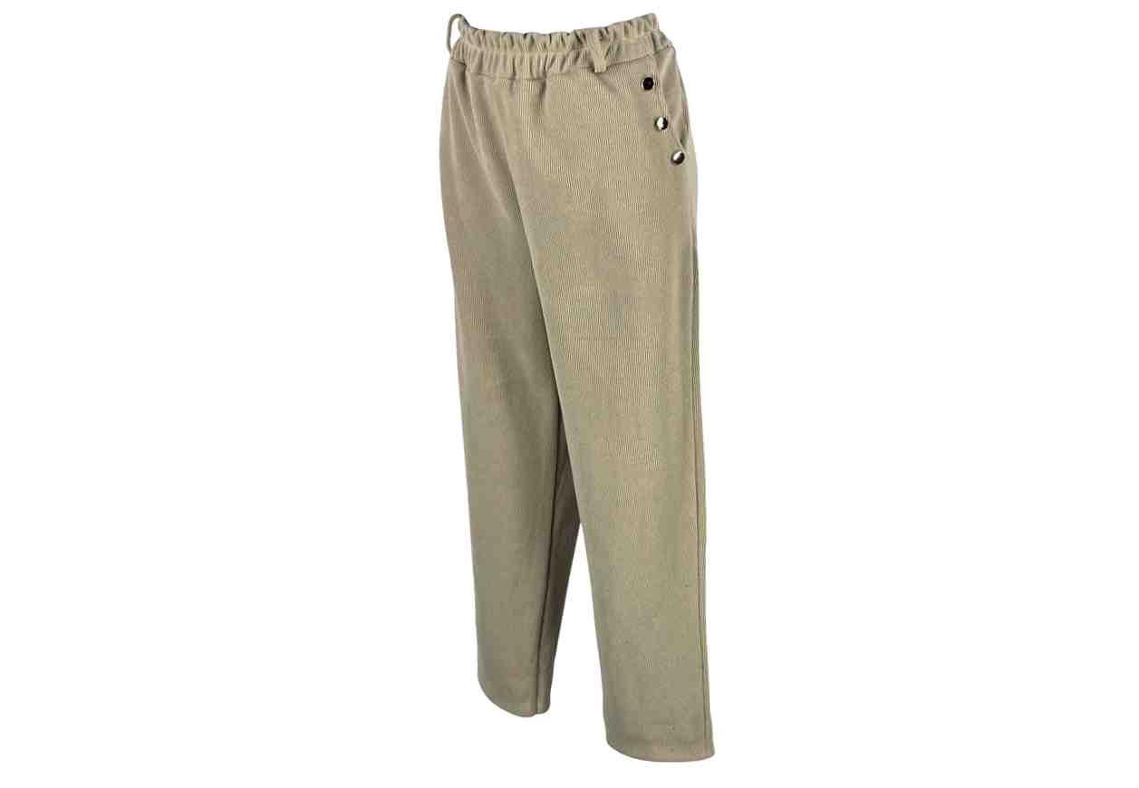 RENE' BORDEN Pantalone a costine in simil velluto, tasche con bottoni applicati ed elastico in vita.