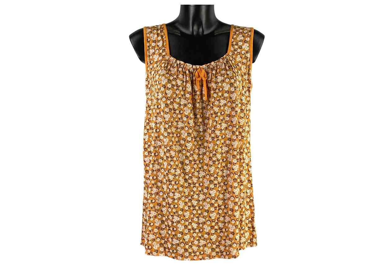 (S) BU Canotta in fantasia floreale con fiocco ed elastico su scollo.