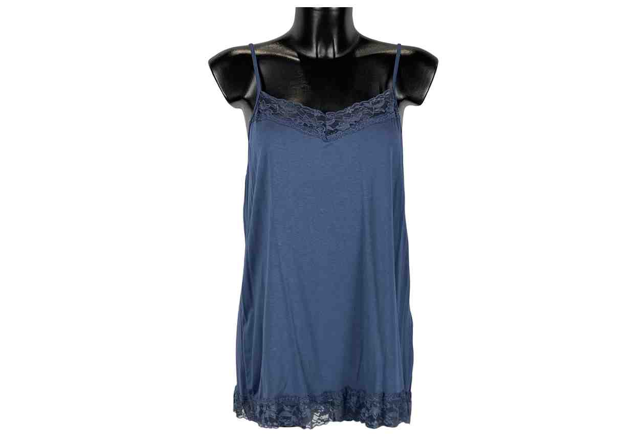 GRETA GARBO Canotta in tinta unita con profili in pizzo e spallina sottile.