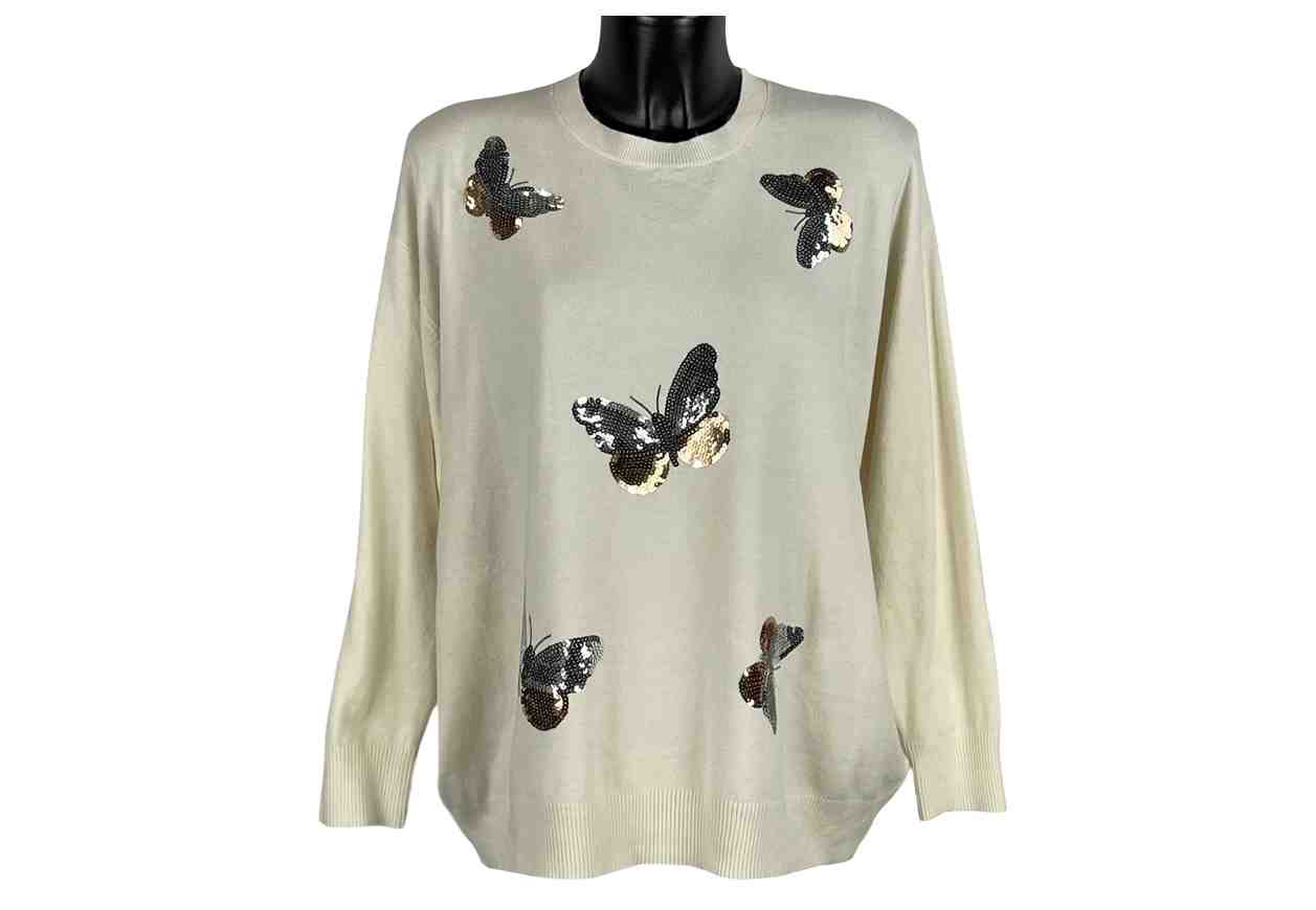GRETA GARBO Maglia con farfalle in strass, girocollo e maniche lunghe.