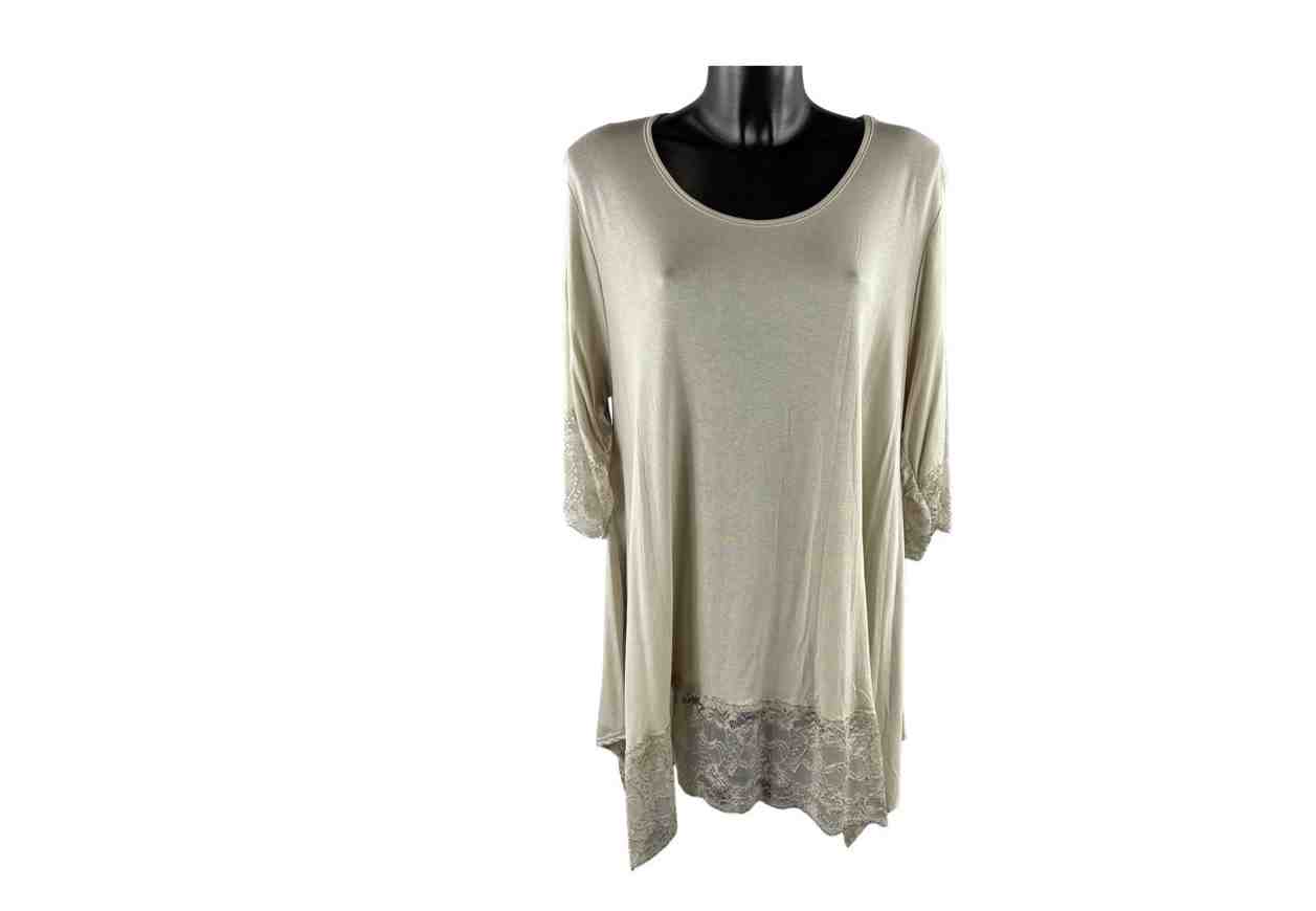 (S) GG Maglia in tinta unita con manica 3/4 e profili in pizzo.