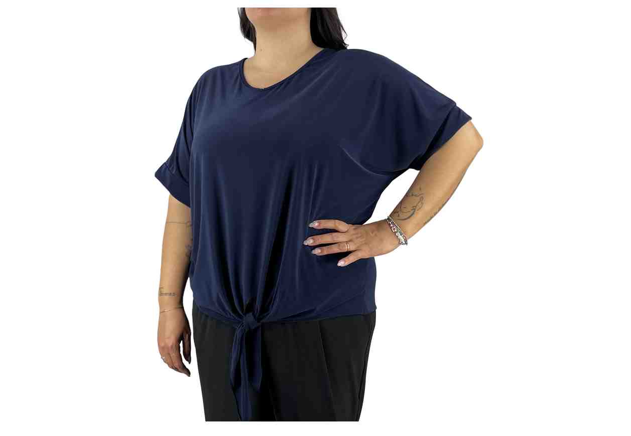 GRETA GARBO Maglia in tinta unita con scollo a V, maniche corte e nodo sul fondo.