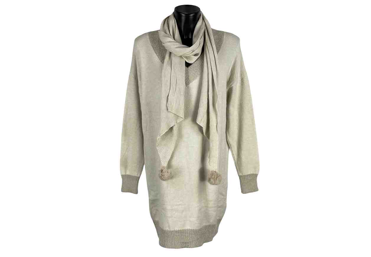 RENE' BORDEN Abito in maglia con sciarpa, scollo a V.