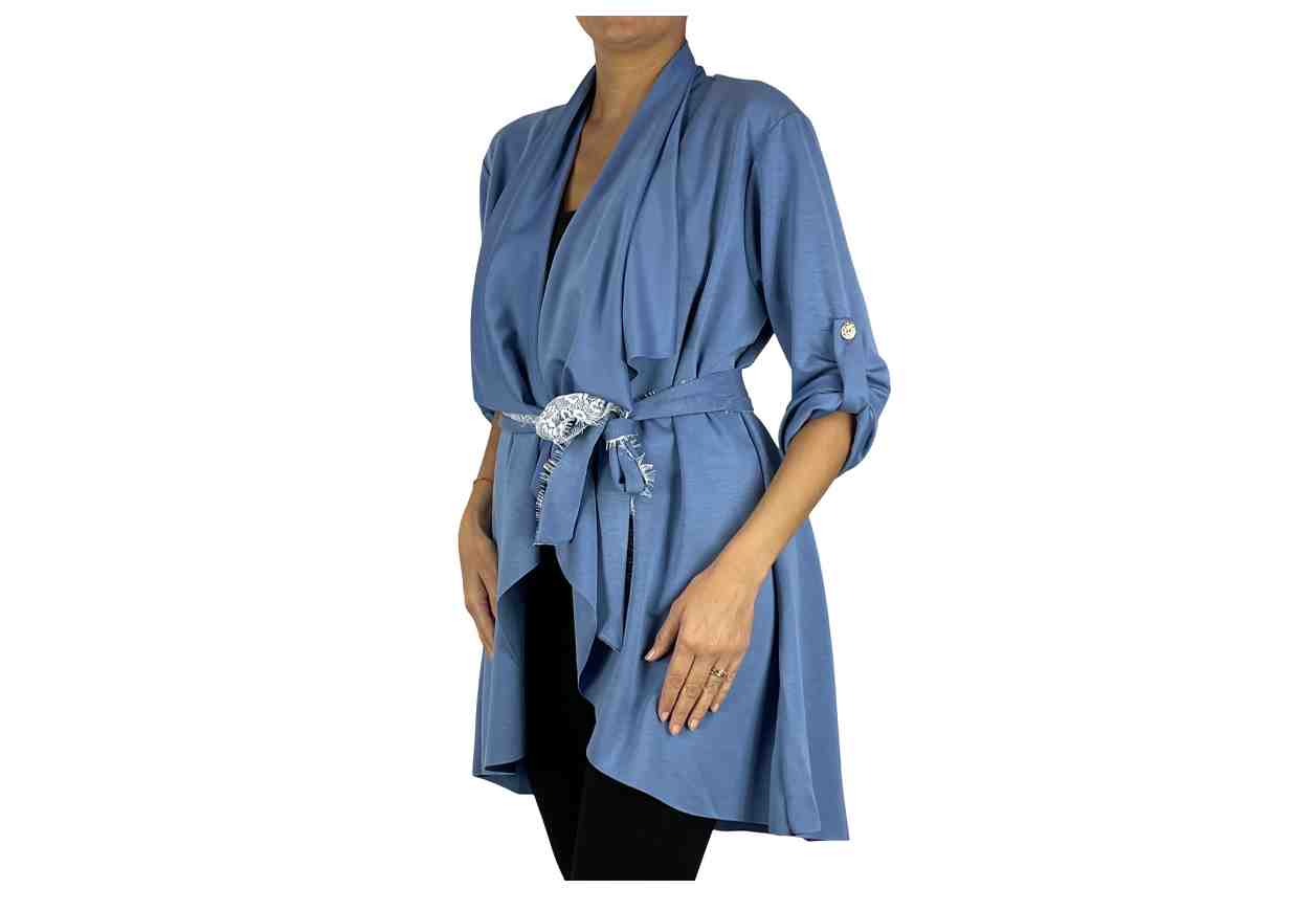 RENE' BORDEN Cardigan aperto con collo a scialle, cintura con pizzo, maniche regolabili.