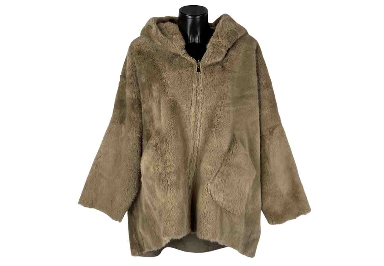 RENE‘ BORDEN Ecopelliccia double face con doppia lunghezza, cappuccio e tasche.