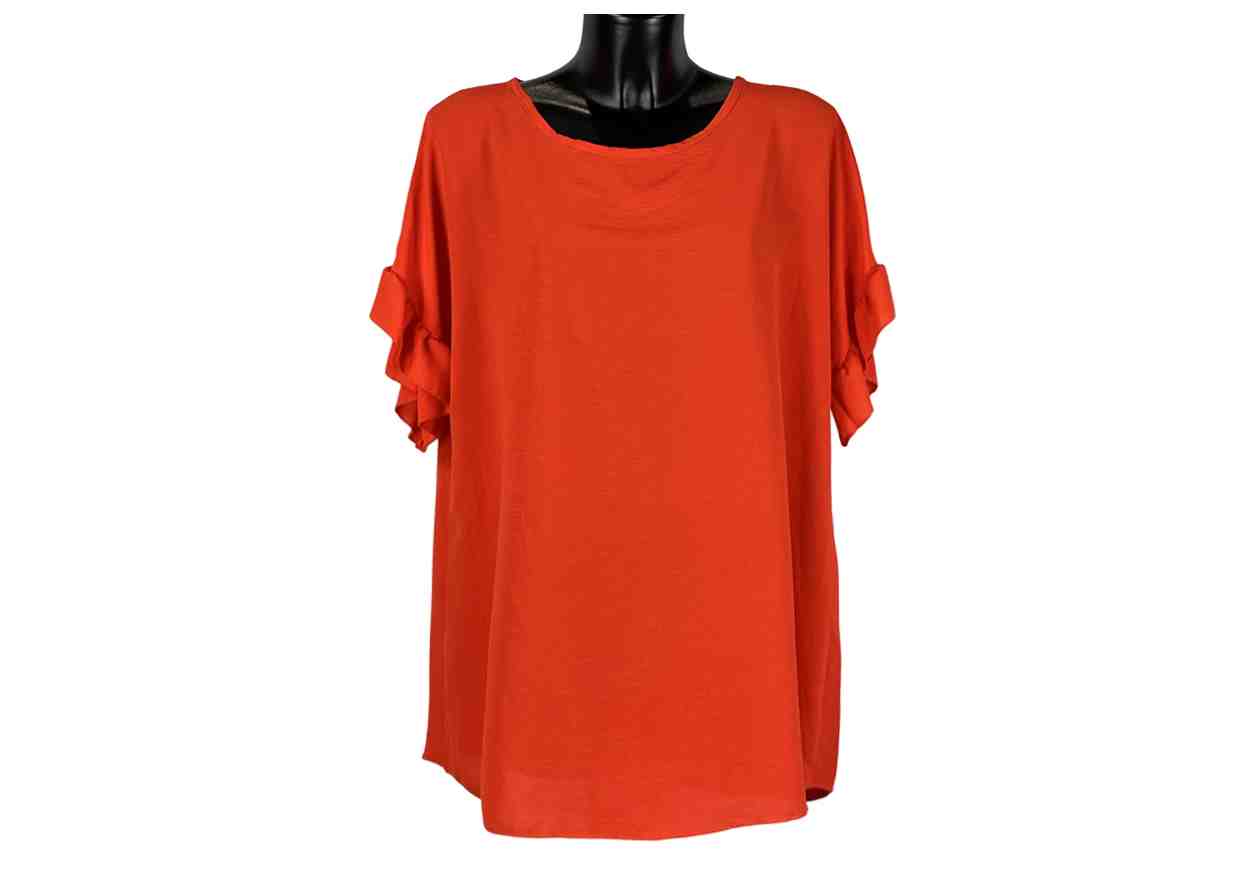 RENE’ BORDEN Maglia in tinta unita con catena sul retro e maniche corte con rouches.