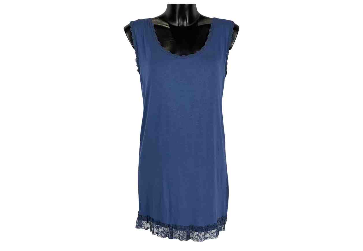 Maglia smanicata in tinta unita con profili in pizzo.