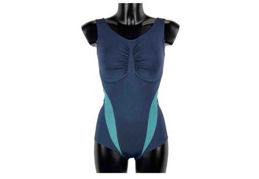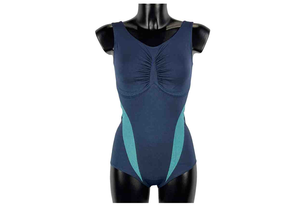 Fattore di supporto 3, design a strisce sportive forma visivamente una vita stretta, zona PU nella zona del torace per un migliore sostegno, taglio alto breve forma per uno stomaco piatto