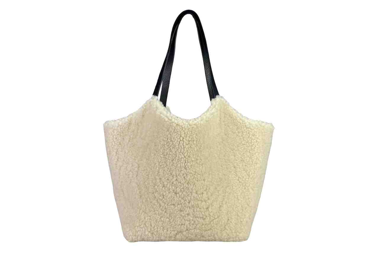 Shopper in 100% montone con ampi manici e fodera in pelle di vitello.