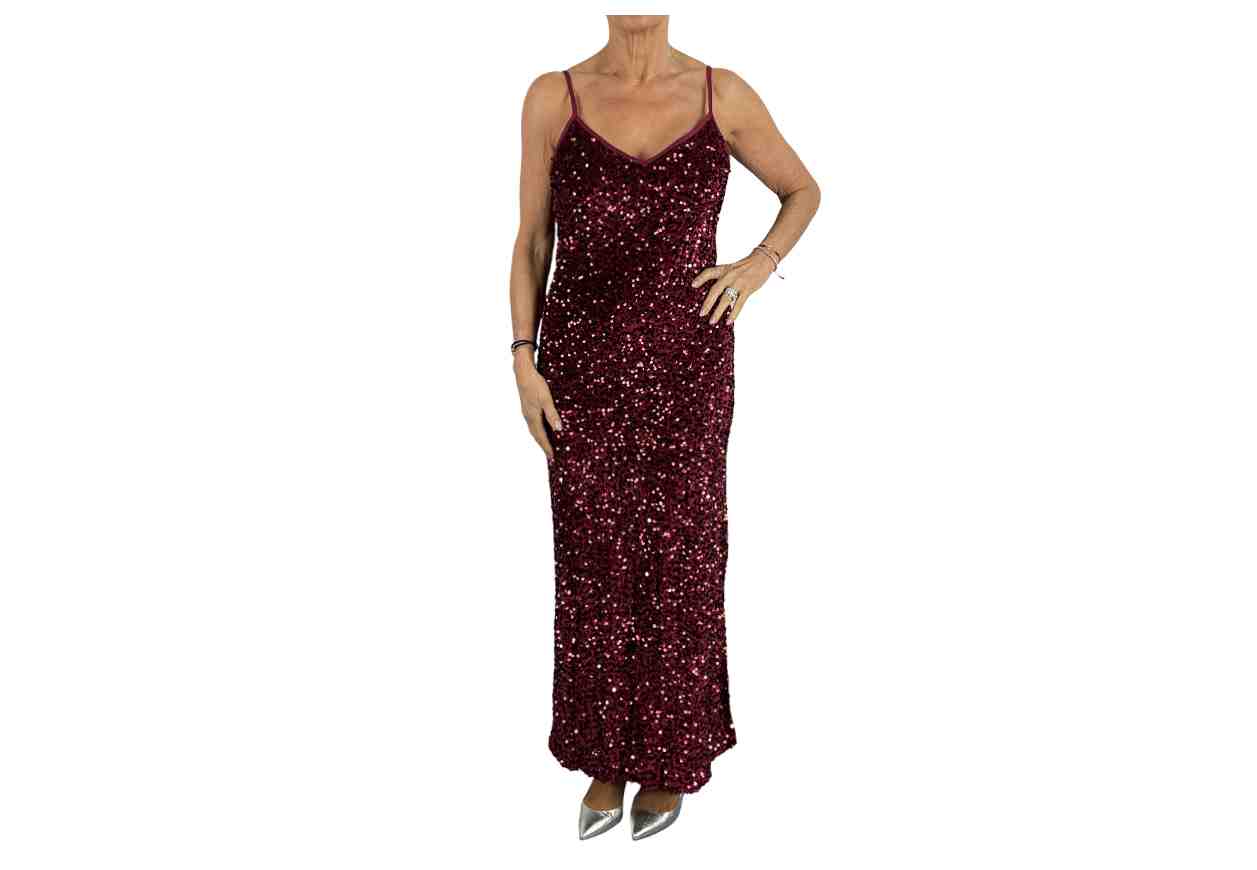 VERONICA RIZZI Abito lungo con paillettes e scollo a V.